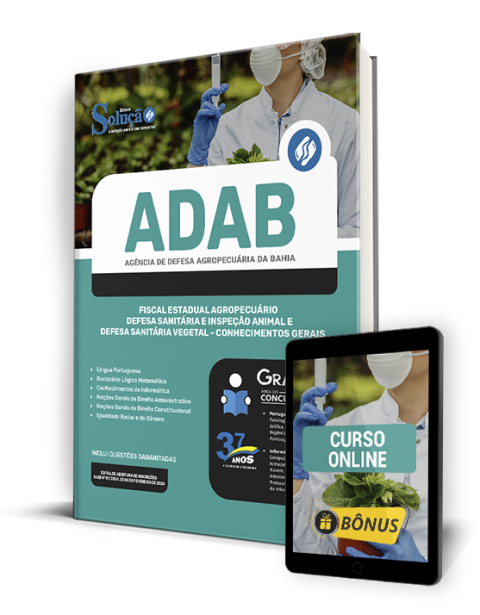 A Apostila ADAB - Agência de Defesa Agropecuária da Bahia 2024 - Fiscal Estadual Agropecuário - Defesa Sanitária e Inspeção Animal e Defesa Sanitária Vegetal - Conhecimentos Gerais foi organizada para proporcionar um melhor rendimento na sua preparação, abordando cada conteúdo de forma objetiva e direcionada. Estude para o Concurso da ADAB - Agência de Defesa Agropecuária da Bahia 2024 com um material de acordo com o Edital oficial para o cargo de Fiscal Estadual Agropecuário - Defesa Sanitária e Inspeção Animal e Defesa Sanitária Vegetal - Conhecimentos Gerais.